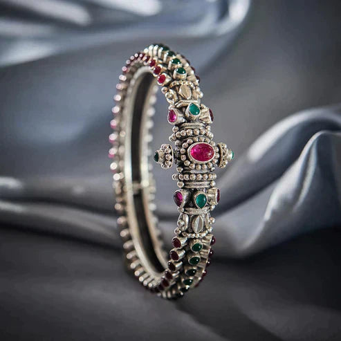 Silver ruby Synthetic Stones bangle