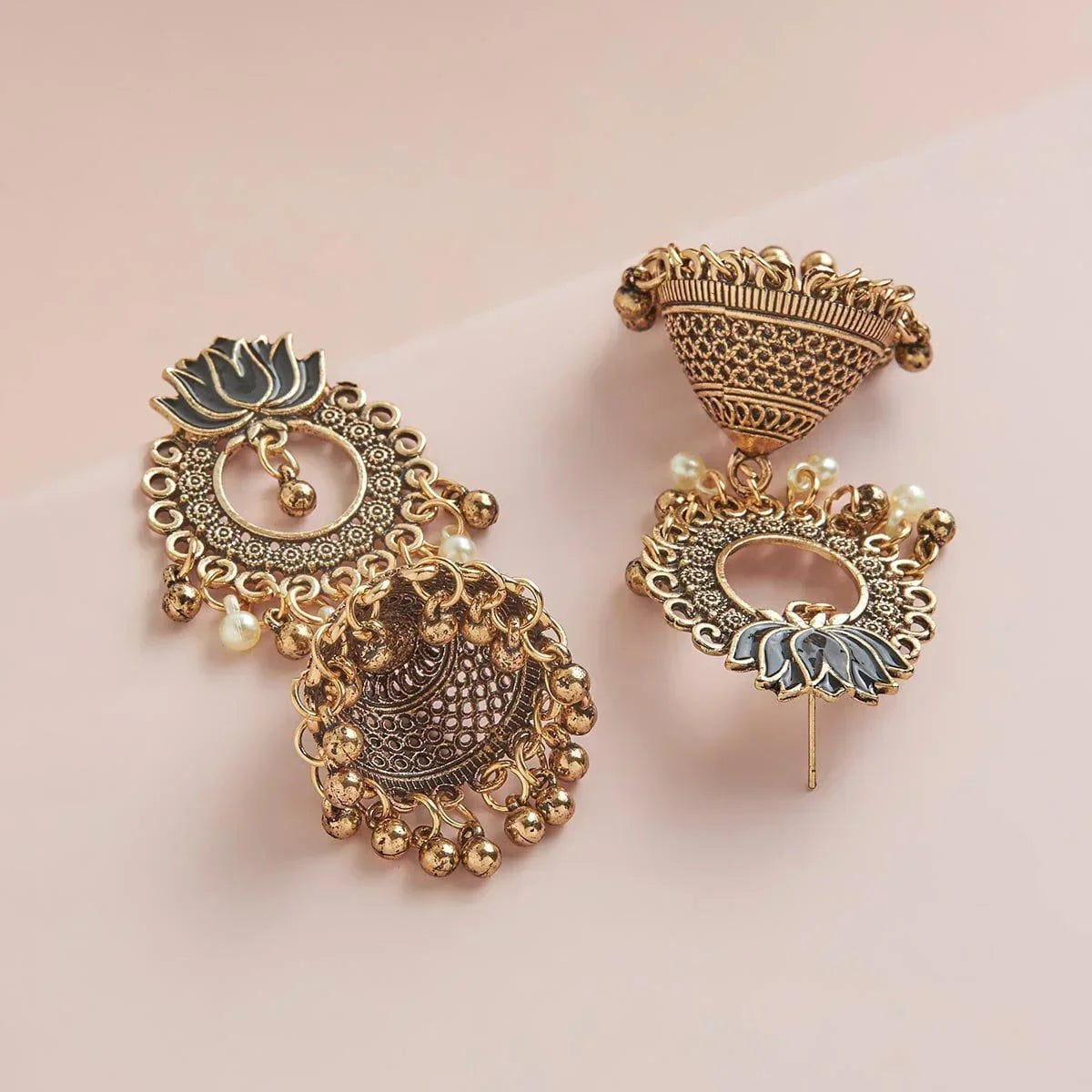 Base Metal: Copper Alloy Stone: Beads Earring Weight: 24 Earring Length (cms): 7 Earring Style: Jhumkas Earring Closure Type: Push Back