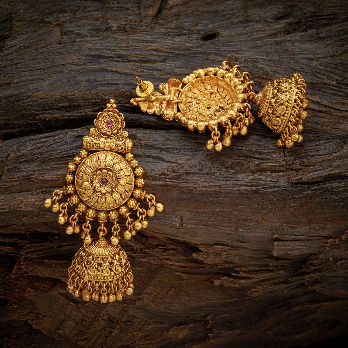 Base Metal: Copper Alloy Stone: Synthetic Stones Earring Weight: 57 Earring Length (cms): 8 Earring Style: Jhumkas Earring Closure Type: Push Back