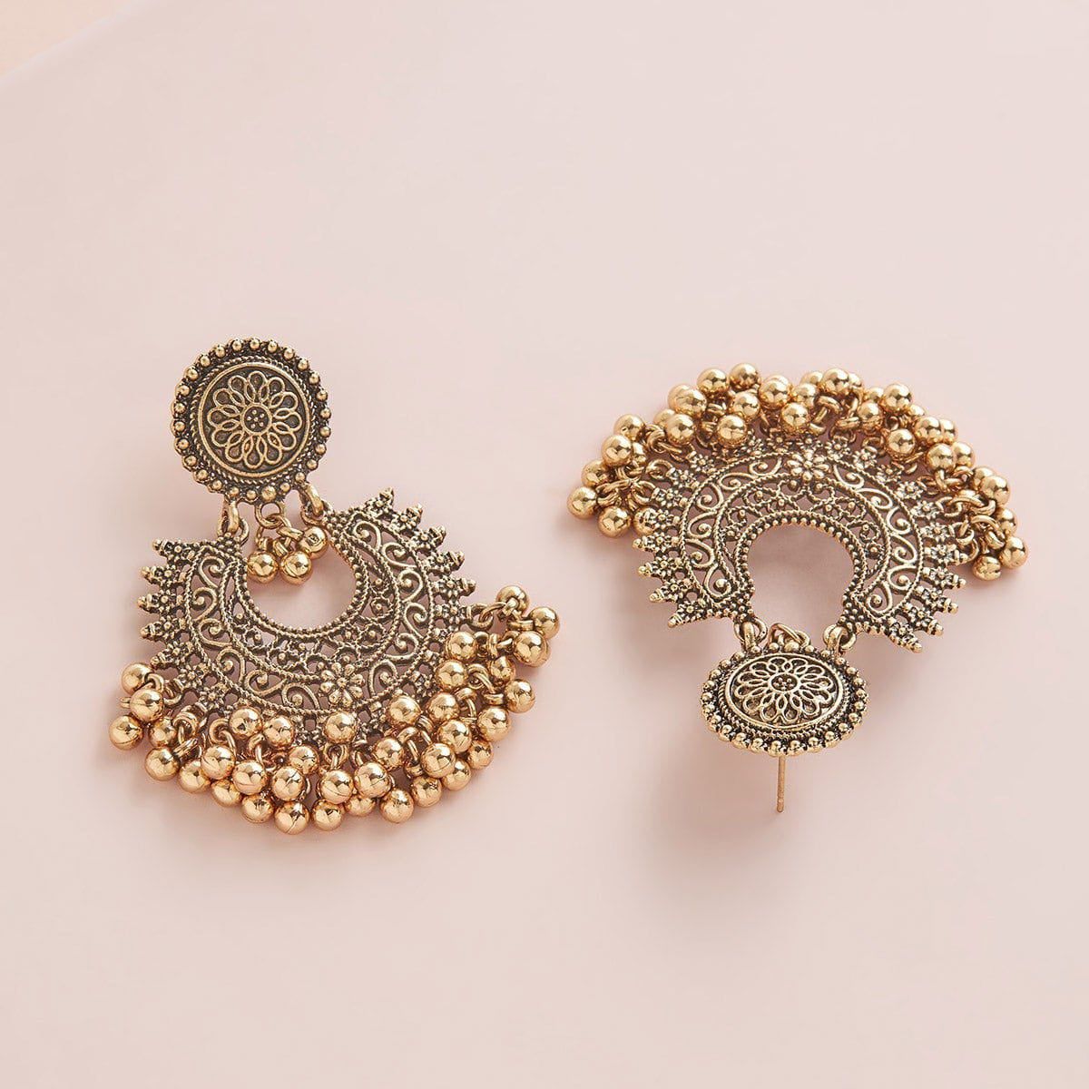 Base Metal: Copper Alloy Stone: NA Earring Weight: 22 Earring Length (cms): 6 Earring Style: Chandbalis Earring Closure Type: Push Back