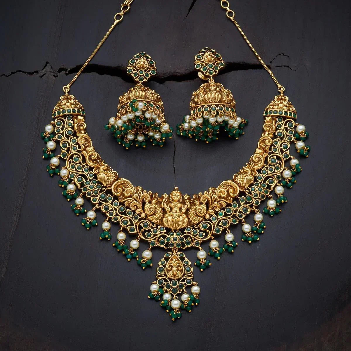 Base Metal: Copper Alloy Stone: Synthetic Stones & Beads Product Weight (gms): 77 Earring Weight: 40 Earring Length (cms): 6 Earring Style: Jhumkas Earring Closure Type: Push Back Product Details: Adjustable Chain