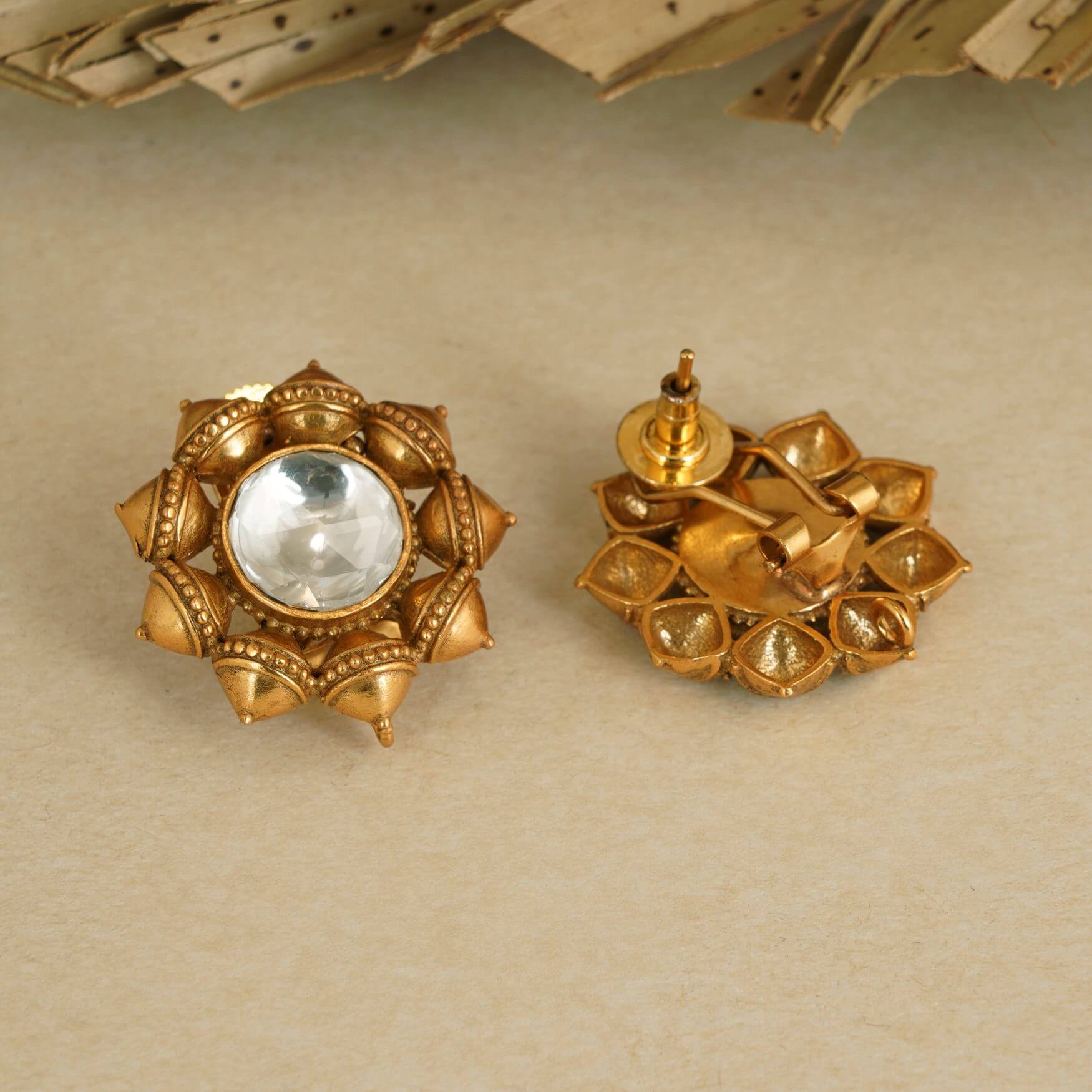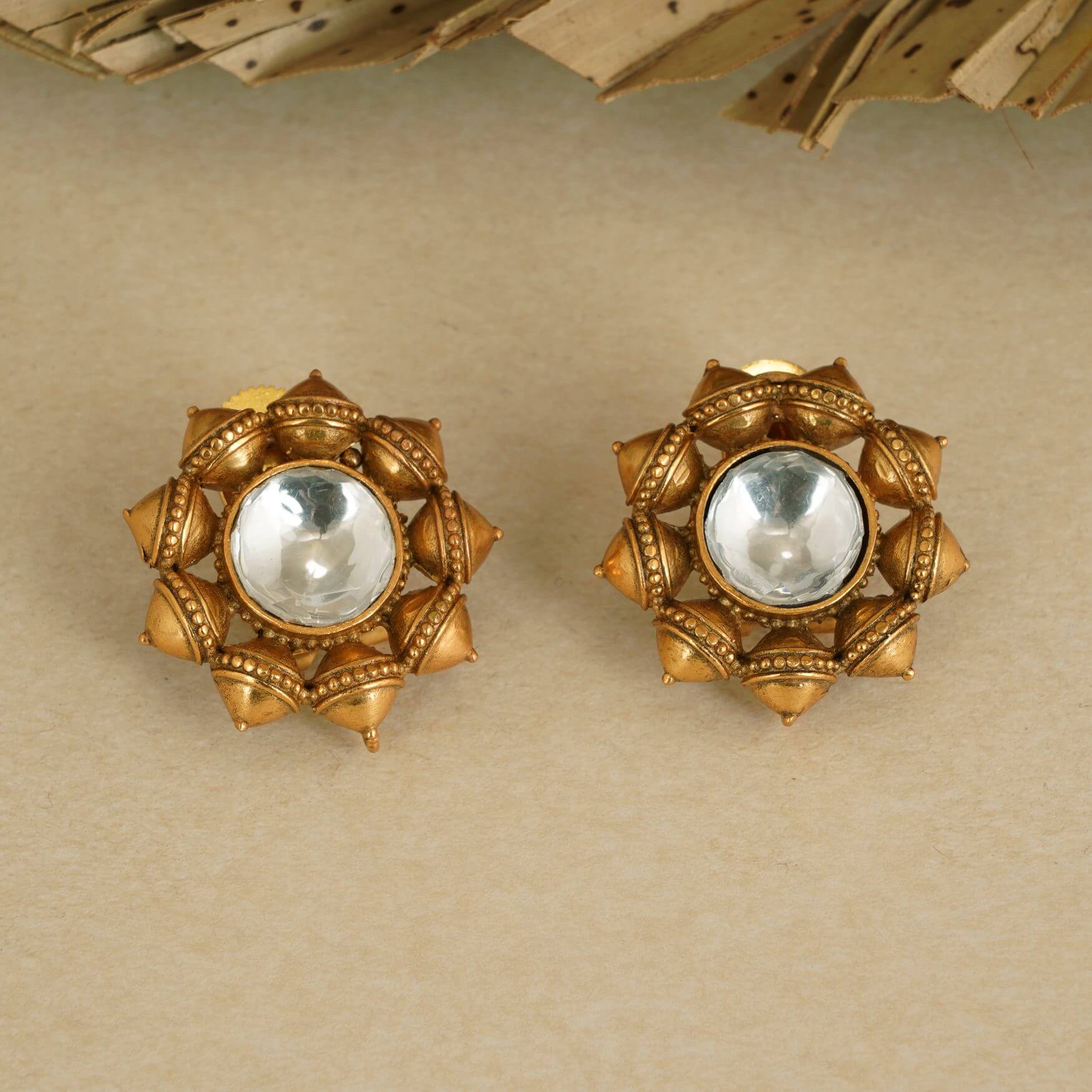 ANTIQUE GOLD DUMROO INSPIRED KUNDAN STUD