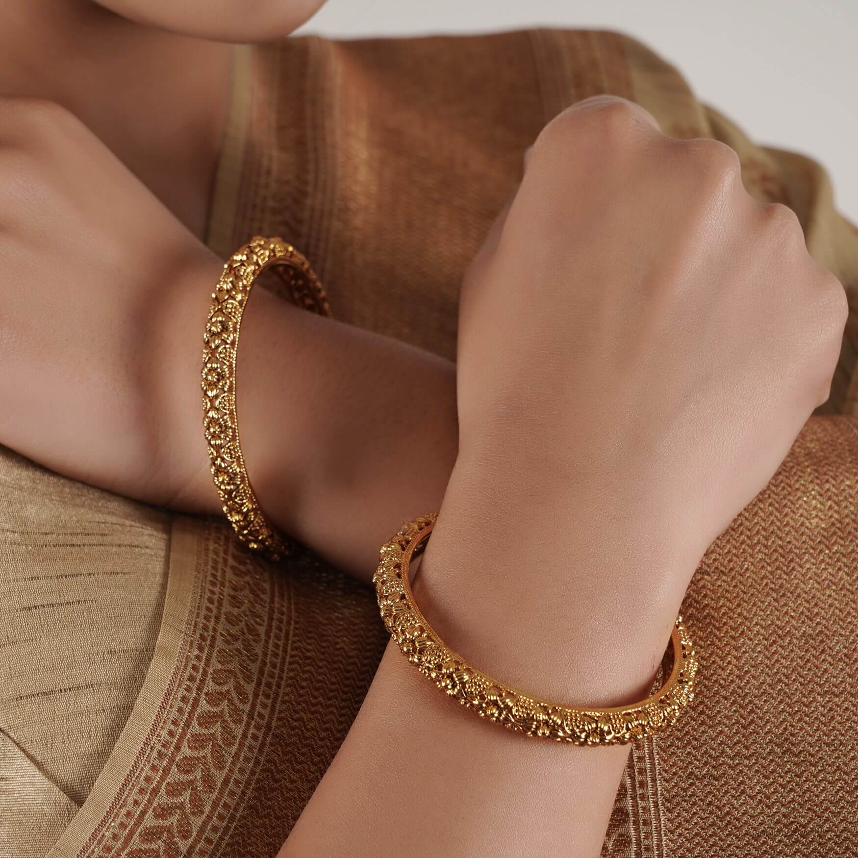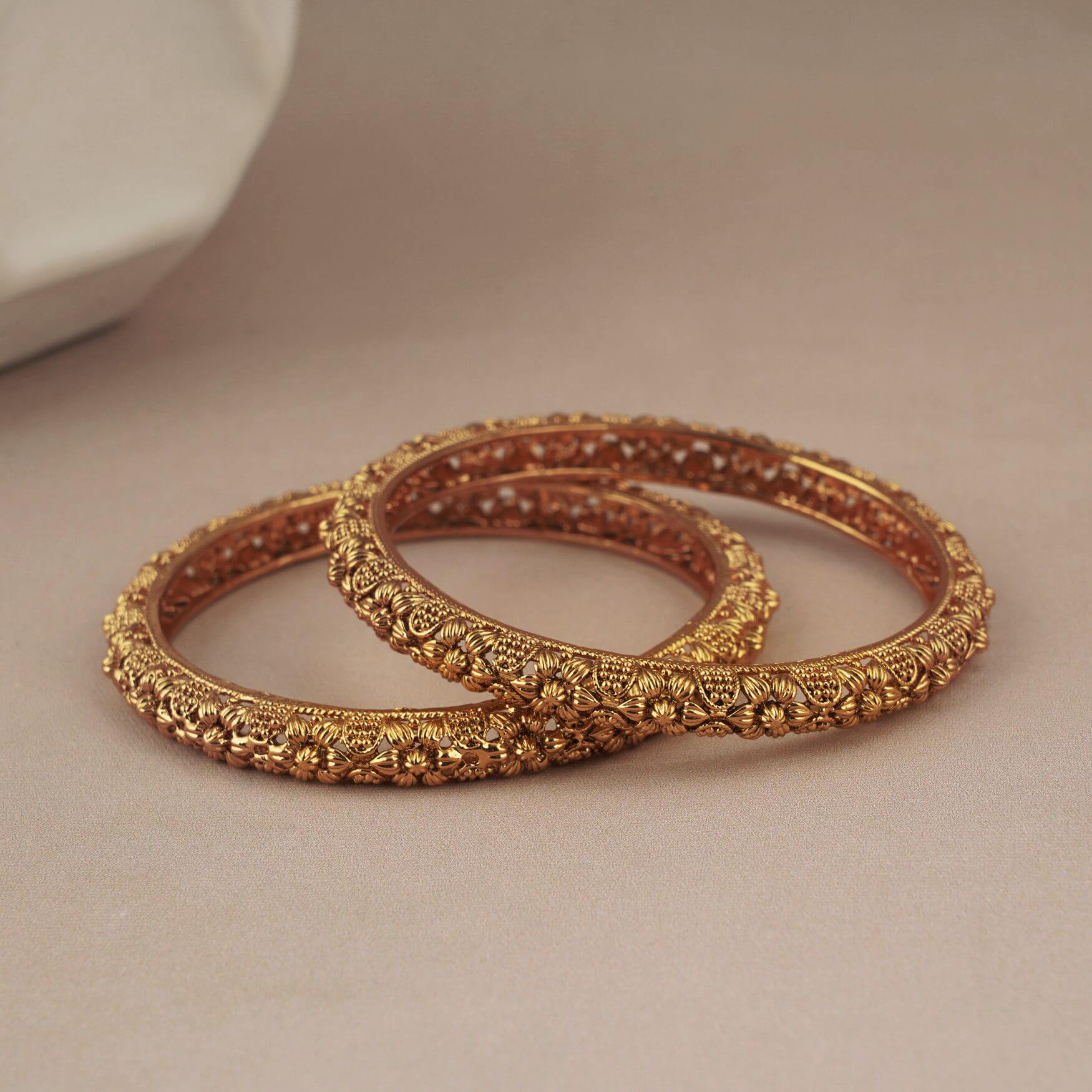 ANTIQUE GOLD FLORAL MOTIF BANGLE SET
