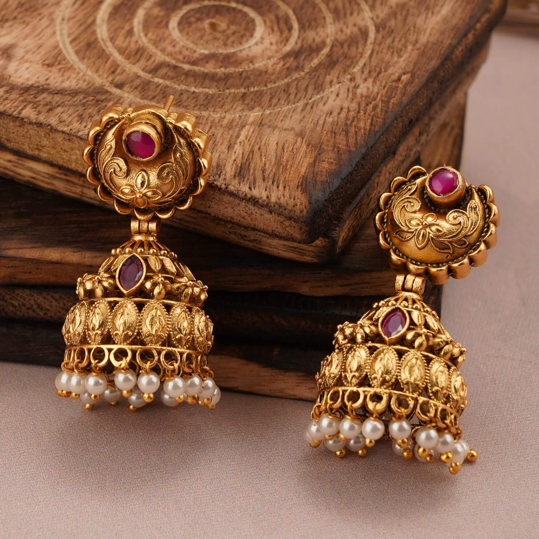 ANTIQUE GOLD RUBY JHUMKA EARRING