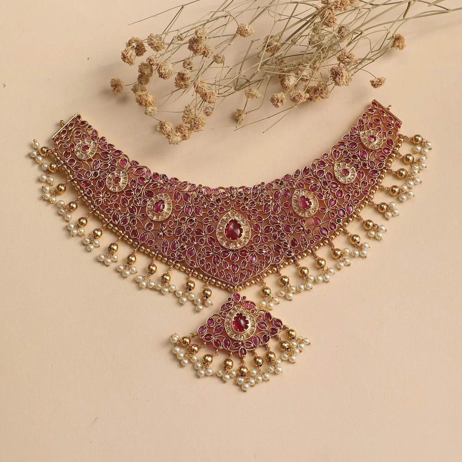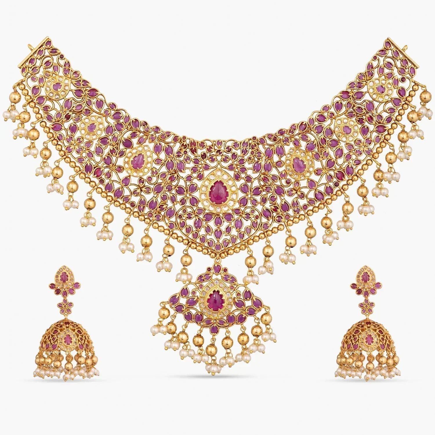 A graceful addition to yourjewelry collection with this sparkling antique CZ necklace set. Featuring timelessflorals makes your appearance noteworthy.