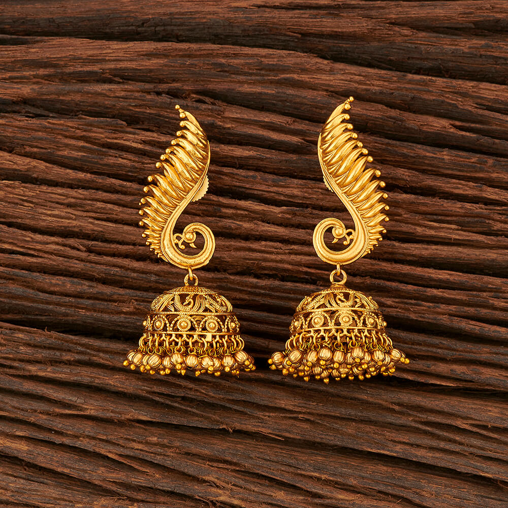 Antique Peacock Earring With Matte Gold Plating