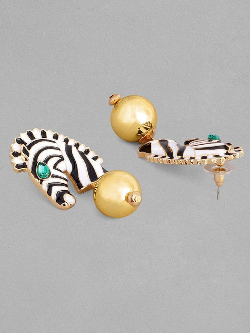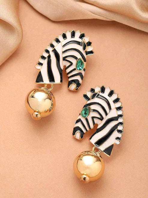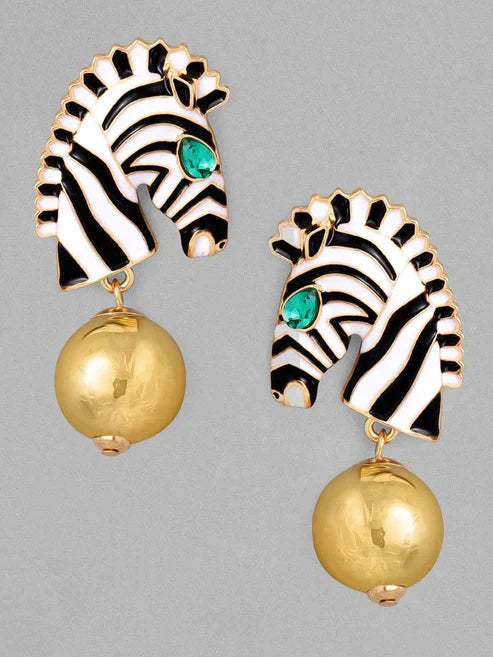 Enamel & Green Stone Zeebra Drop Earrings
