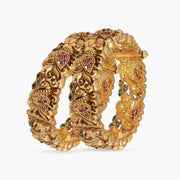 Amplify your outfit with some sparkle on your wrist. The golden gleam is adorned with intricate and timeless floral and bird motifs to keep up the Indian traditional theme.