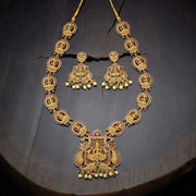 Gold Plated Bridal Set with Intricate Goddess Lakshmi Carvings