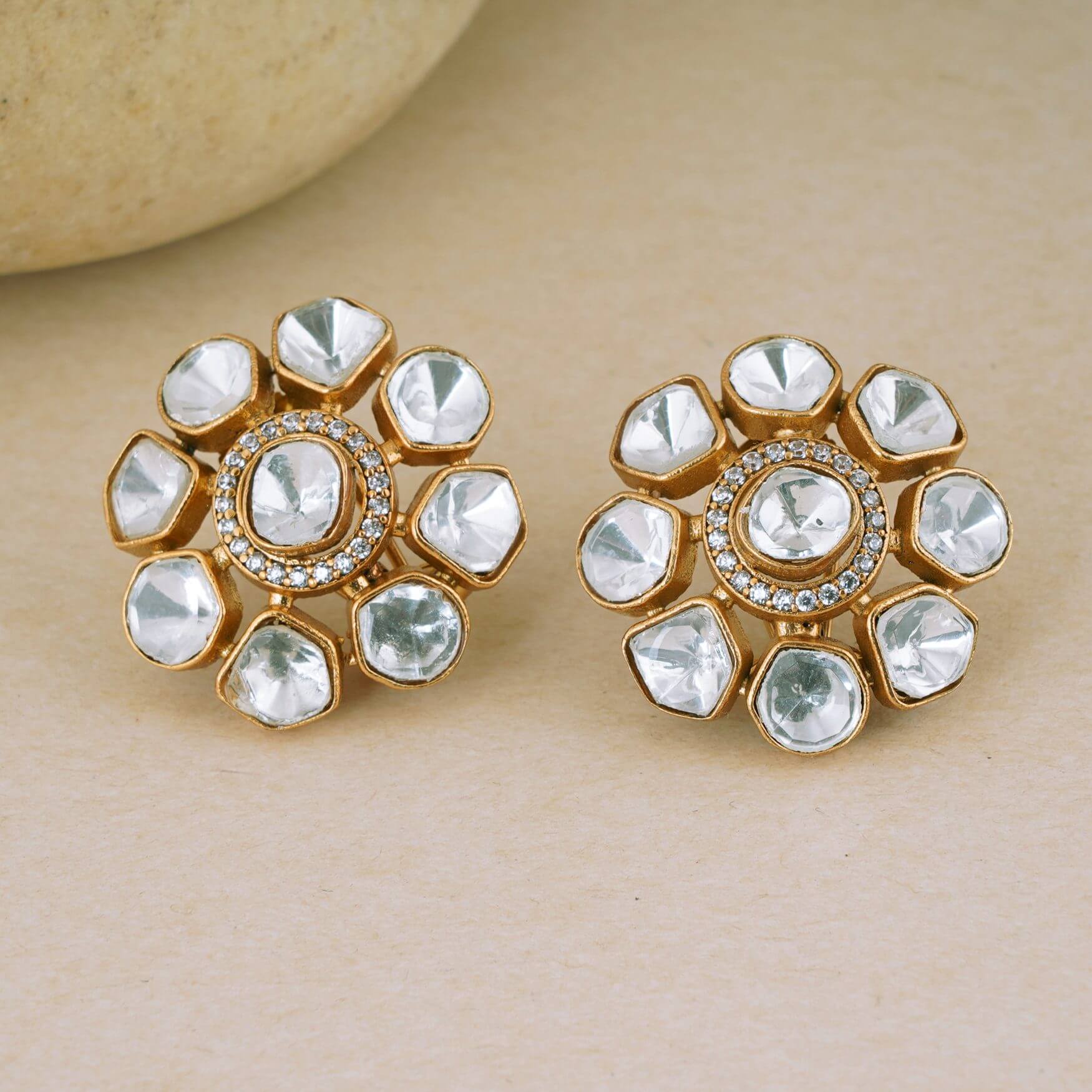 GOLD PLATED FLORAL MESSONITE KUNDAN STUD