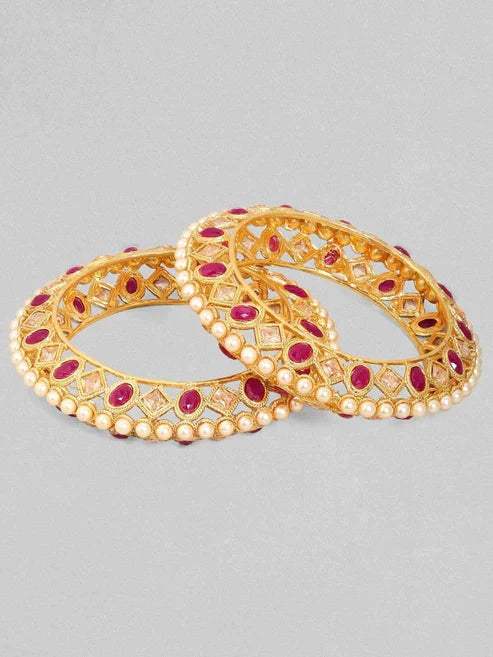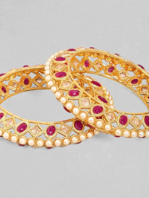 gold Plated Handcrafted Ruby Stone Set of 2 Bangle Set