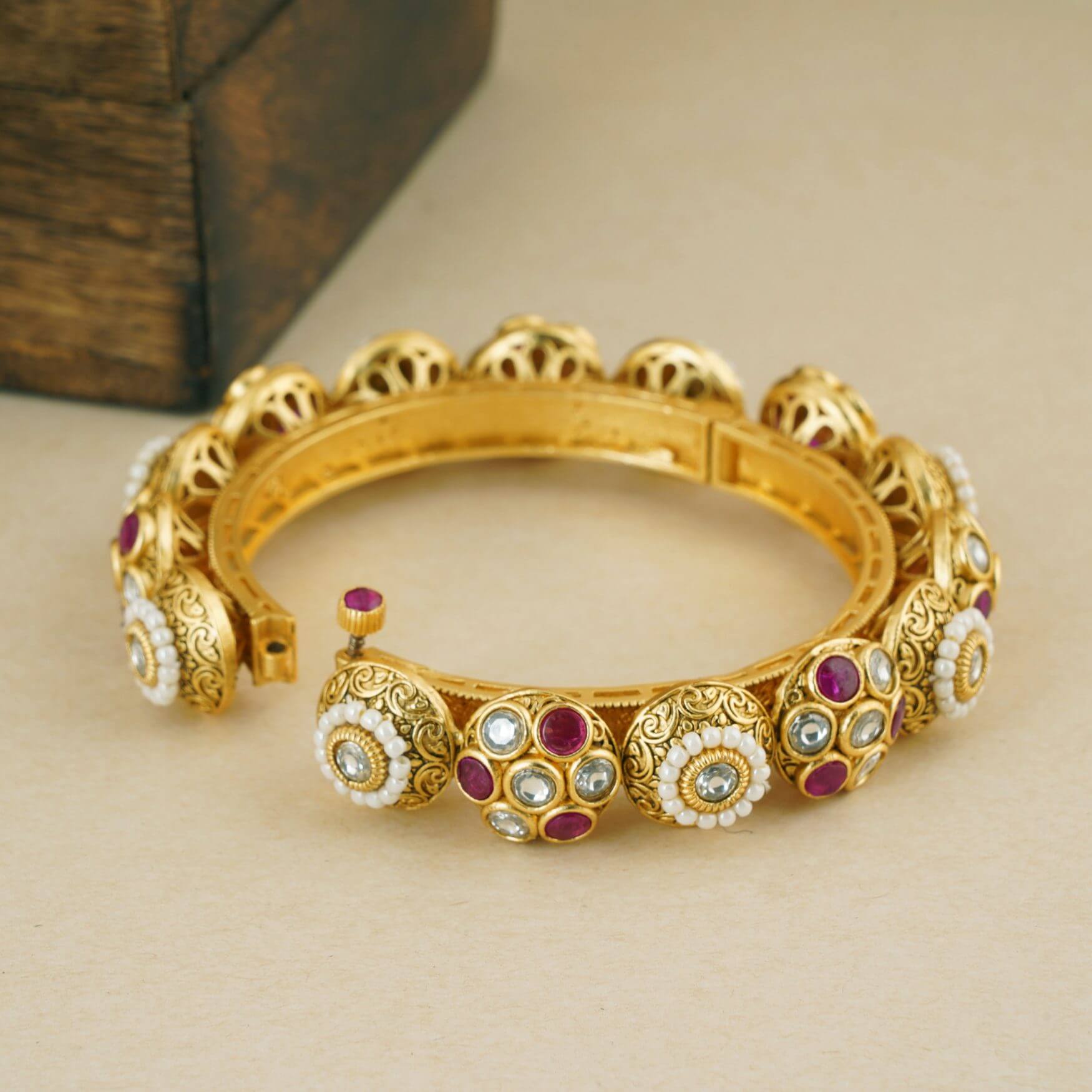 GOLD PLATED KUNDAN RUBY PACHELI OPENABLE KADA