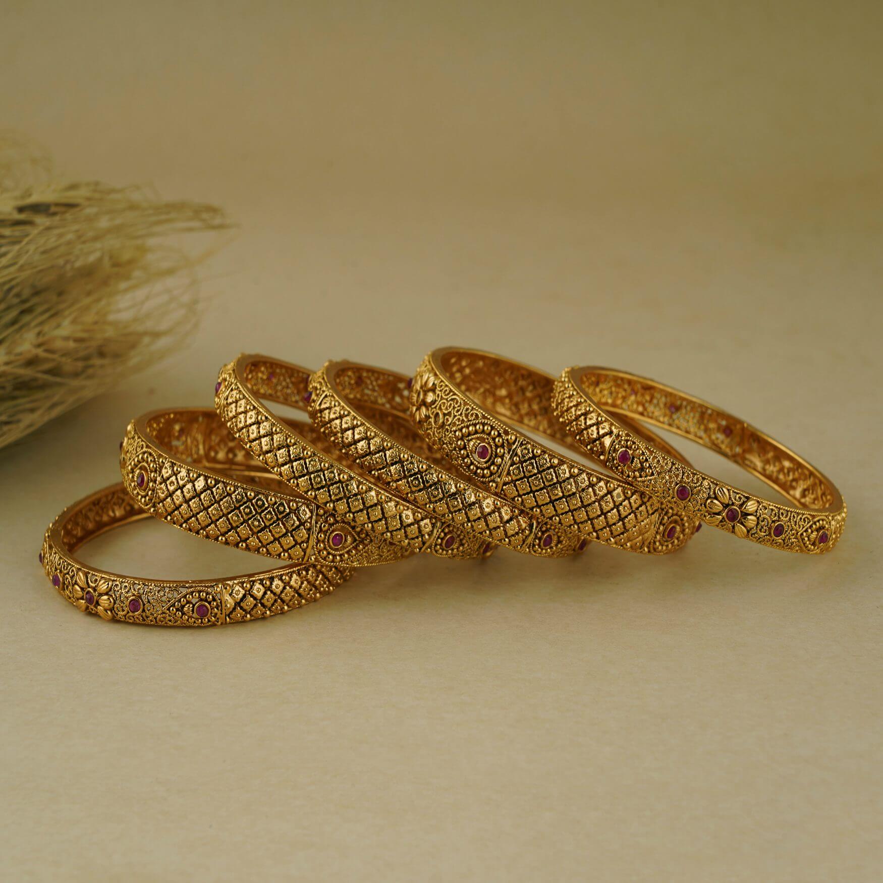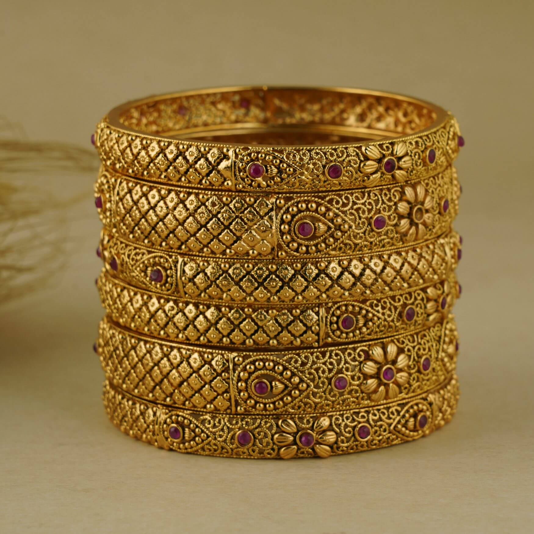 GOLD PLATED STONE BANGLE SET (SET OF 6)