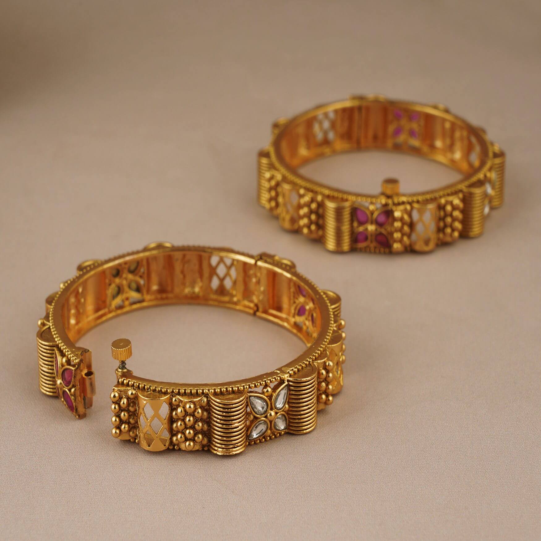 GOLD PLATED STONE OPENABLE BANGLE SET