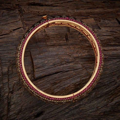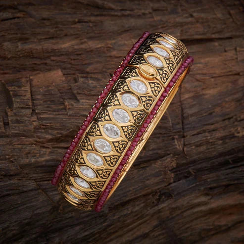 Gold-Plated Traditional Bangle with Kundan Stones & Ruby Beads