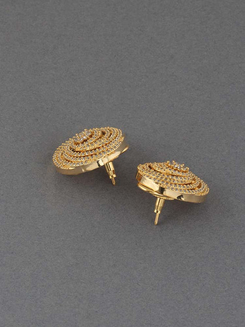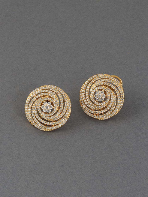 Regal Zirconia Studs have a royal look. they are rose gold tinted studs perfect for statement wear. They have a beautiful tinted glow. The studs have ethereal layers of american diamonds on top of a beautiful rosy frame. These studs will give your get up and even better finesse.åÊ