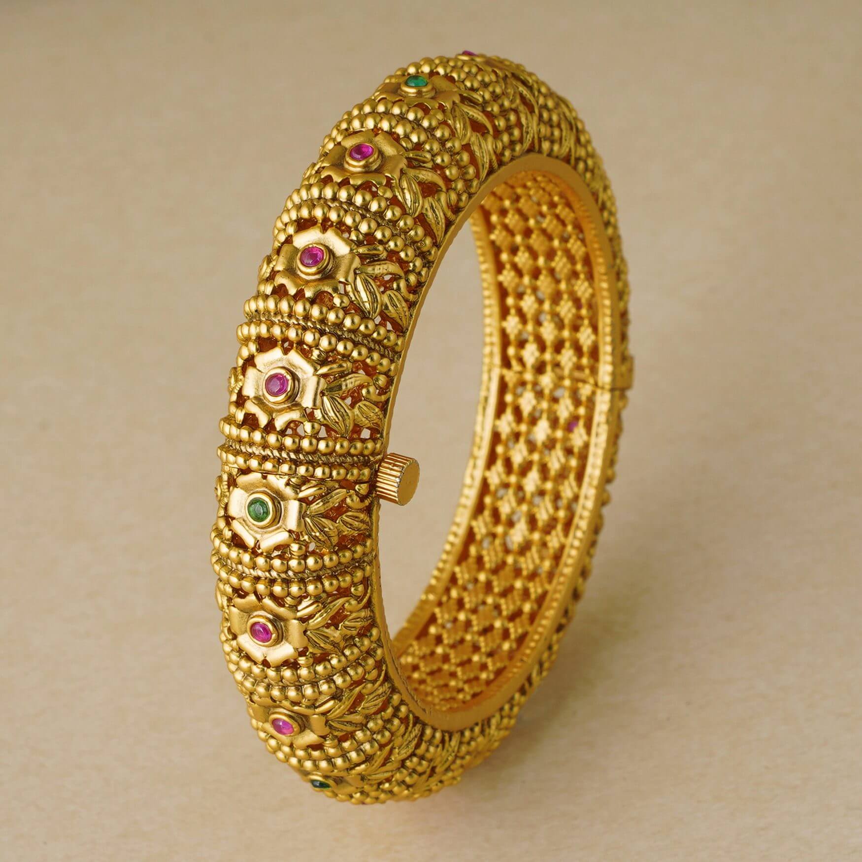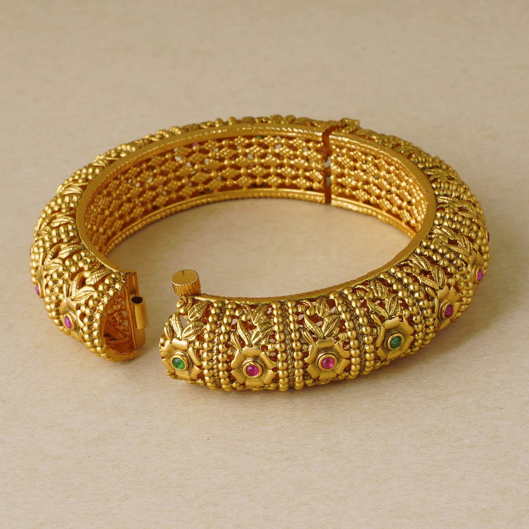 INTRICATE GOLD PLATED STONE KADA BANGLE