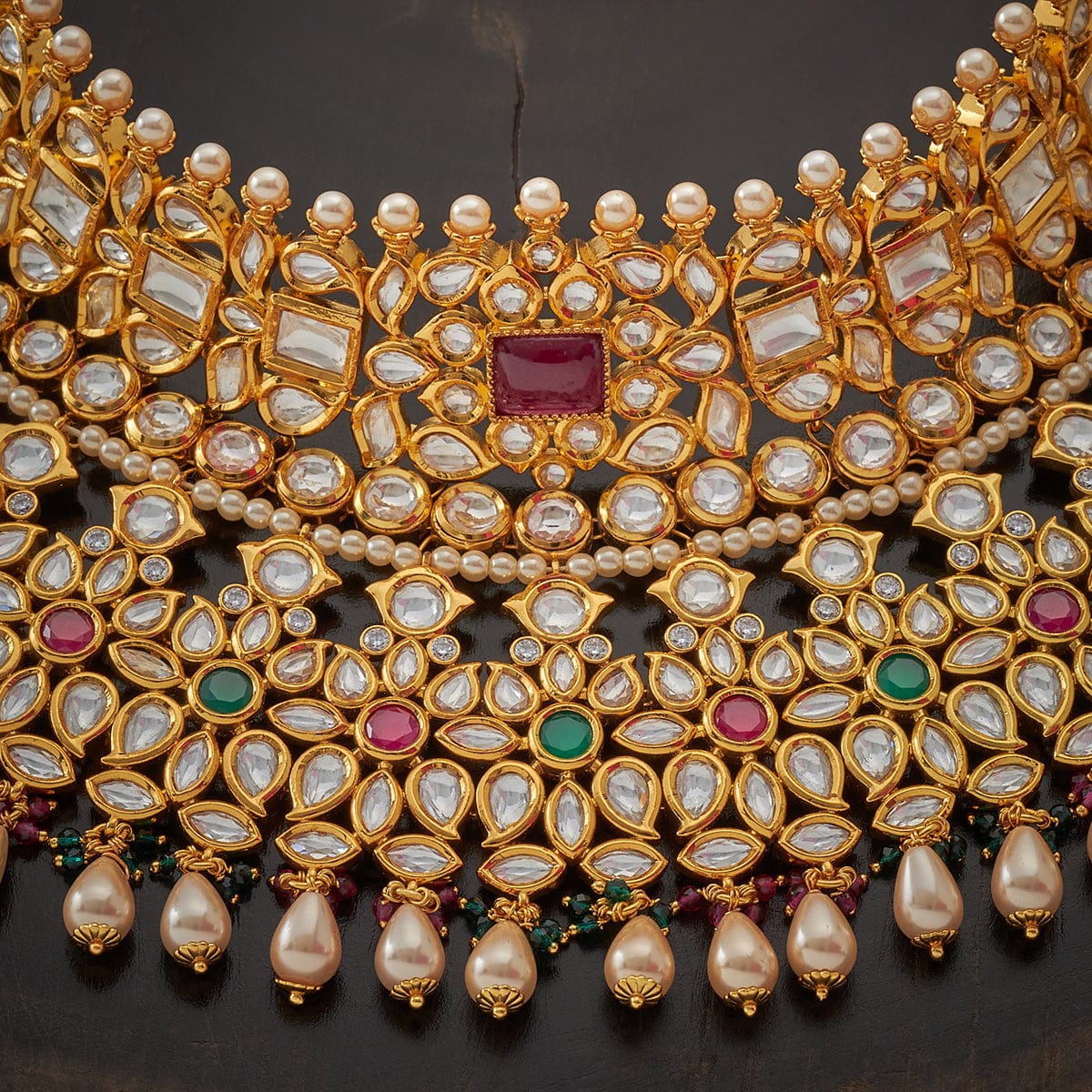 Base Metal: Copper Alloy Stone: Kundan Stones Product Weight (gms): 240 Matil Length (cm): 10 Earring Weight: 68 Earring Length (cms): 7 Earring Style: Jhumkas Earring Closure Type: Push Back Product Details: Adjustable Thread