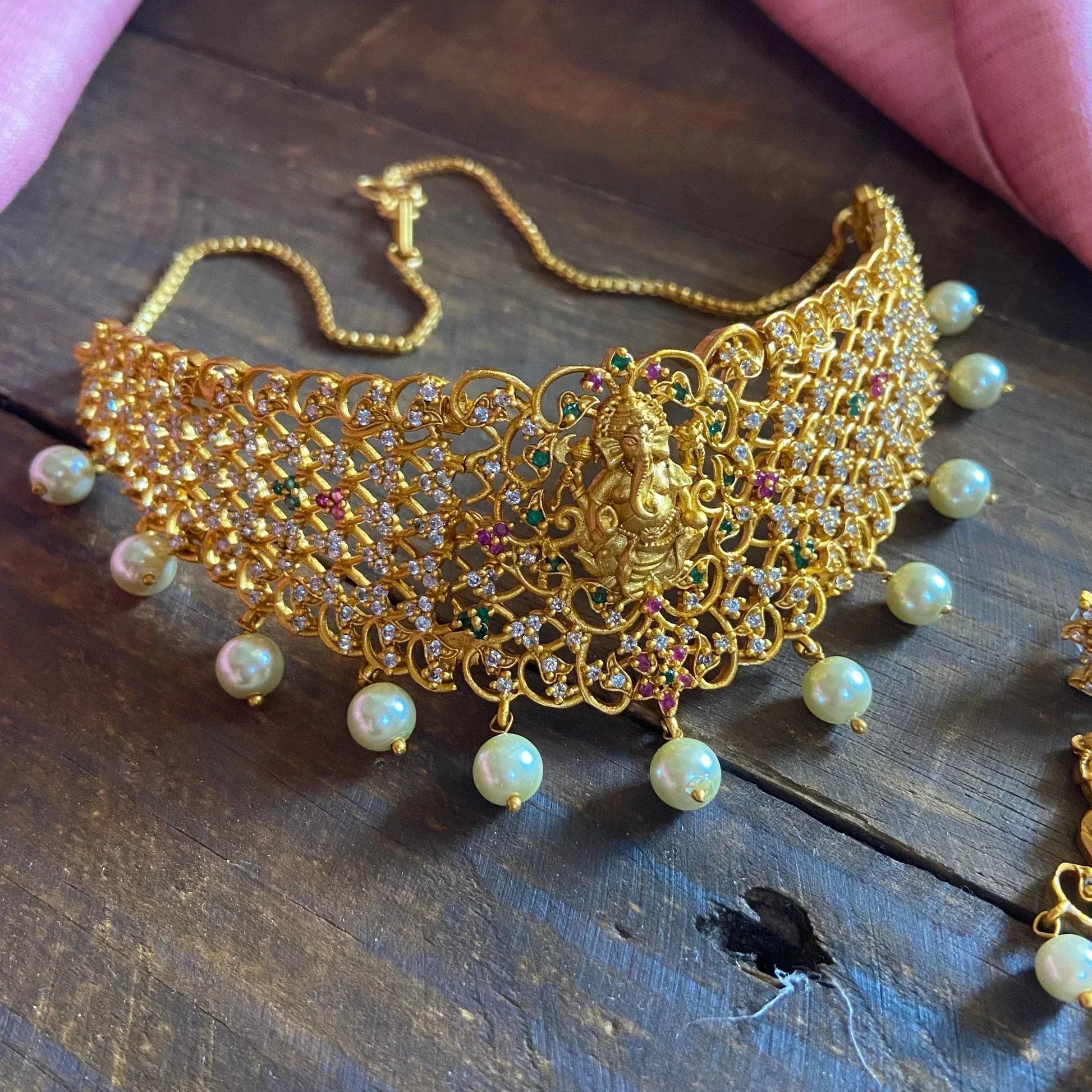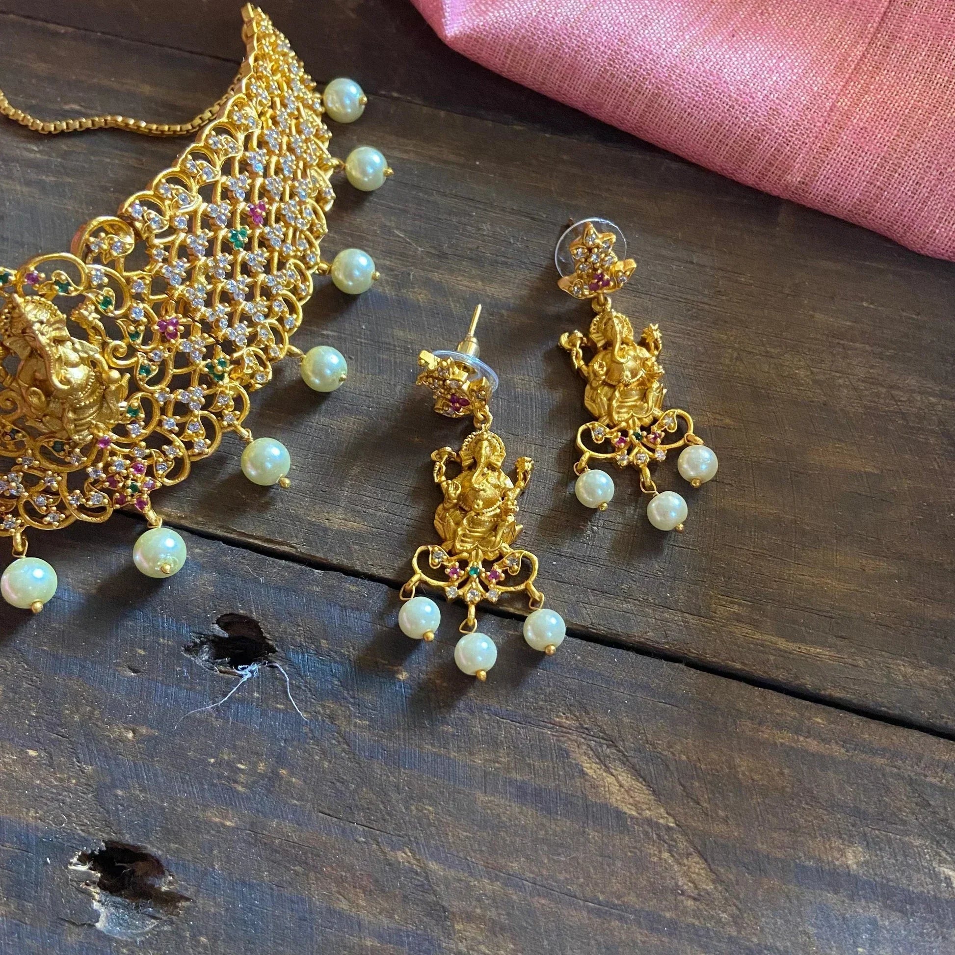 TYPE: Premium Quality High Neck Choker Necklace Set with Jhumkas