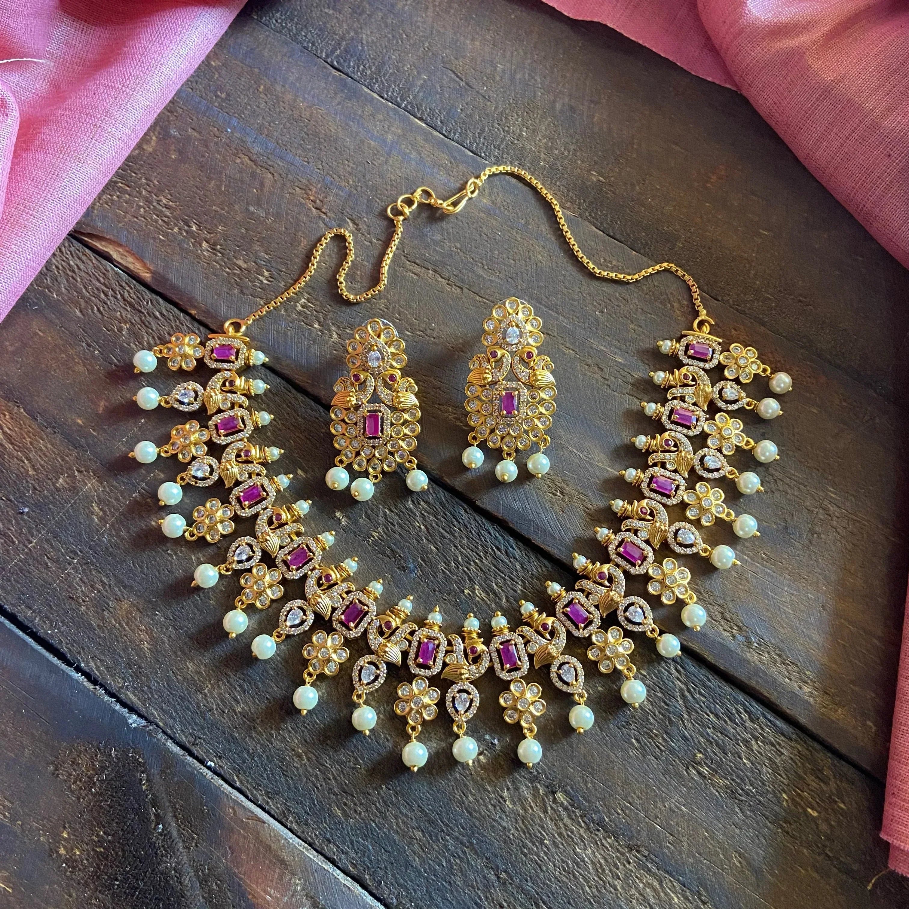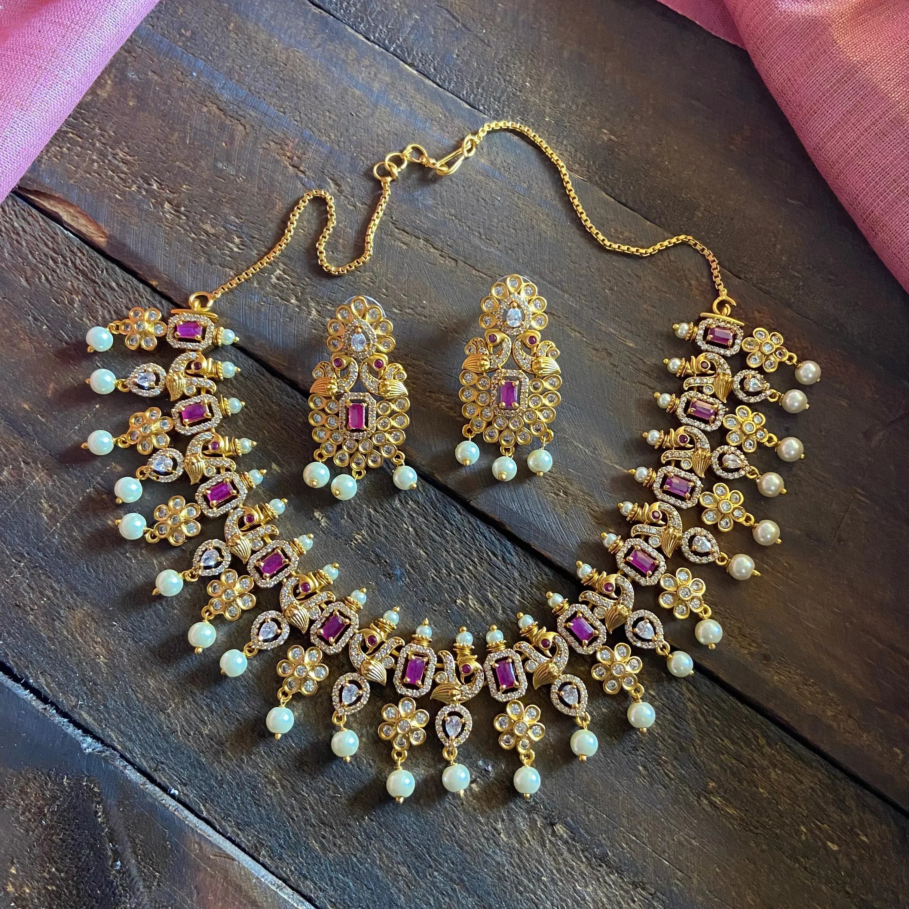 TYPE: Premium Quality AD Necklace Set with Jhumkas