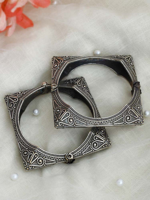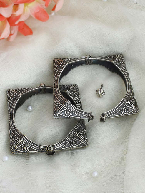 A hot and hit jewellery category for so many years now, this oxidised kada is a charming wrist-enhancer that will create a statement look with its silver and black tinge!