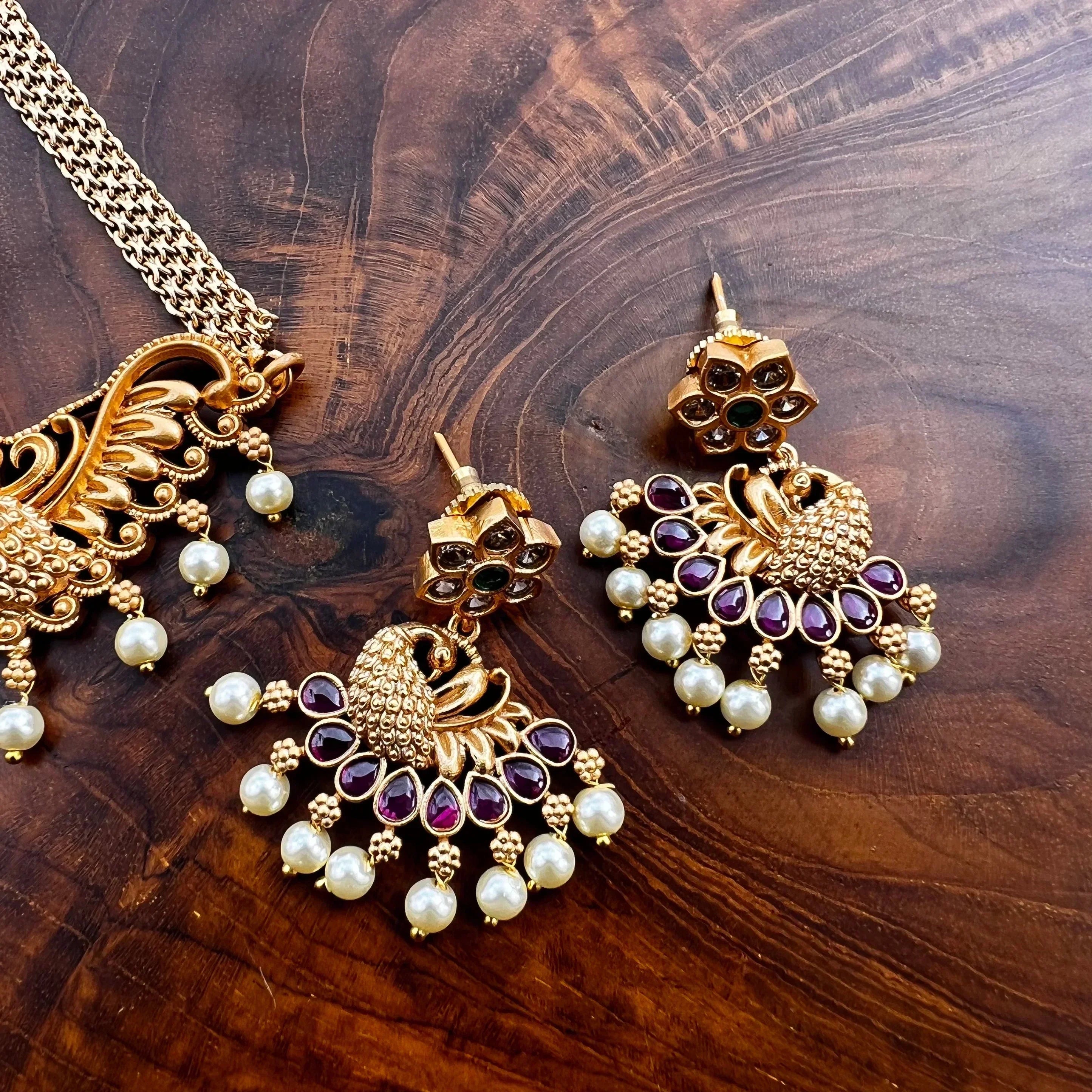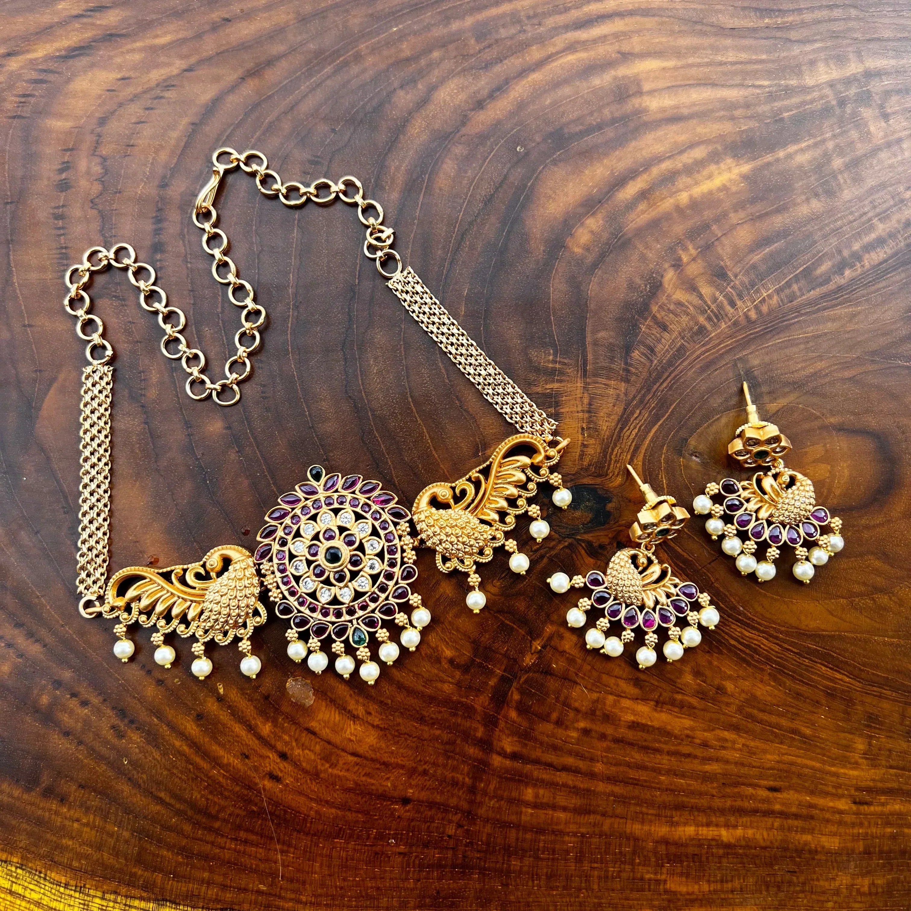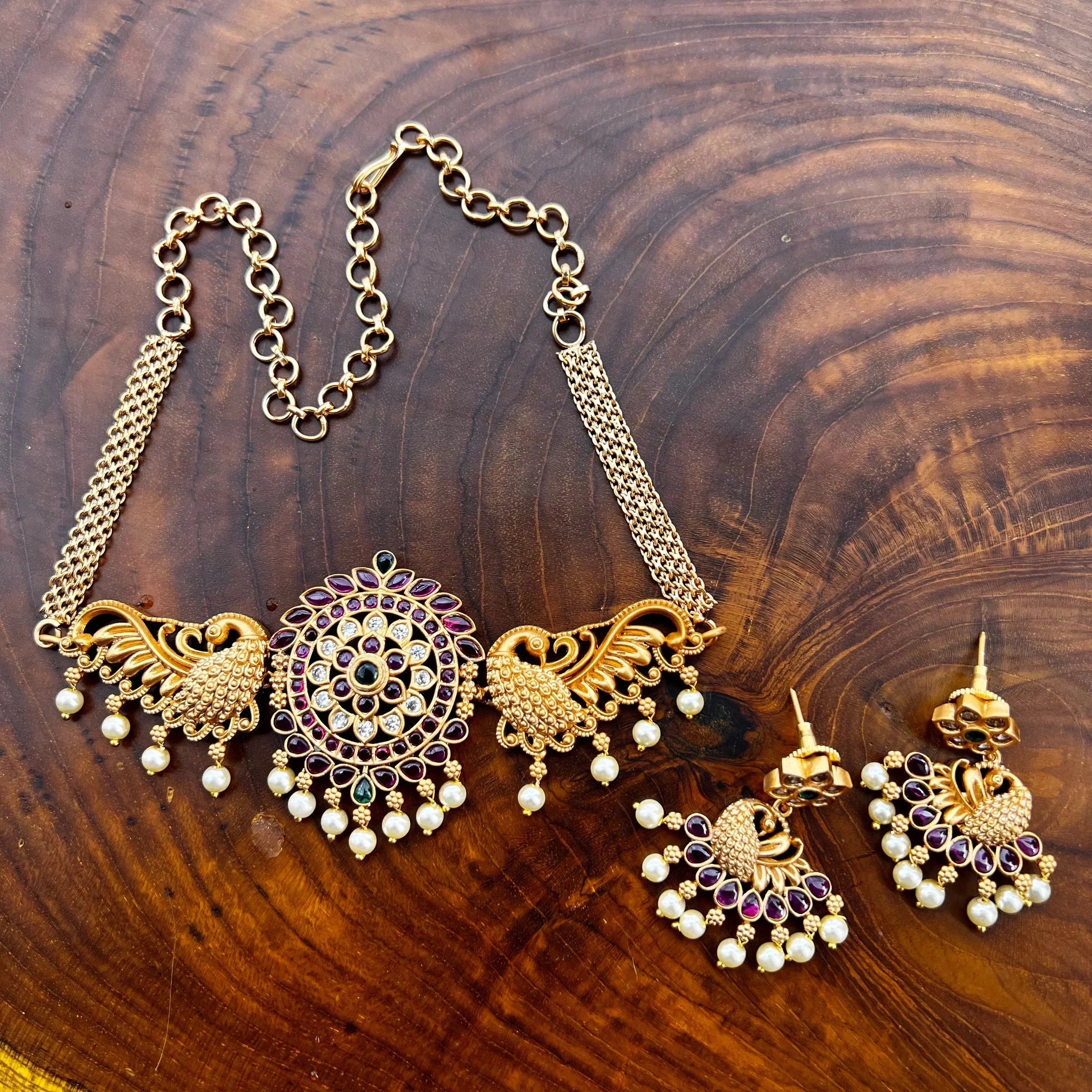 Real Kemp Matte Finish Peacock Chakra High Neck Choker Necklace Set